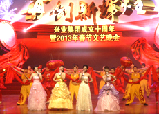“再創(chuàng)新輝煌”興業(yè)集團(tuán)2013年春節(jié)聯(lián)歡晚會(huì)歷時(shí)2個(gè)多小時(shí),節(jié)目形式有歌舞、雜技、相聲、器樂、戲曲、情景朗誦等,內(nèi)容豐富,精彩紛呈;特別是央視著名主持人小尼和國家一級(jí)演員李玉剛等明星的加盟,讓整臺(tái)晚會(huì)無比璀璨;借助演播大廳極具現(xiàn)代化的舞美燈光效果驚艷四座,為我集團(tuán)成立十周年畫上濃墨重彩的一筆,充分展示了我集團(tuán)的企業(yè)實(shí)力,謳歌了興業(yè)人艱苦奮斗、團(tuán)結(jié)協(xié)作、拼搏進(jìn)取的創(chuàng)業(yè)精神和興業(yè)報(bào)國的高尚情懷,也為港城人民獻(xiàn)上了一場(chǎng)精彩、難忘、歡樂、美好的文化盛宴。 |